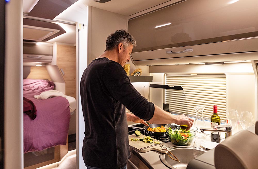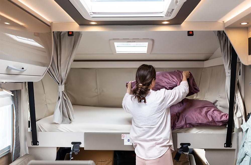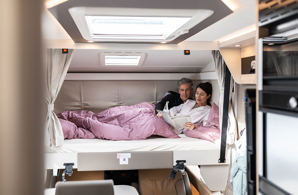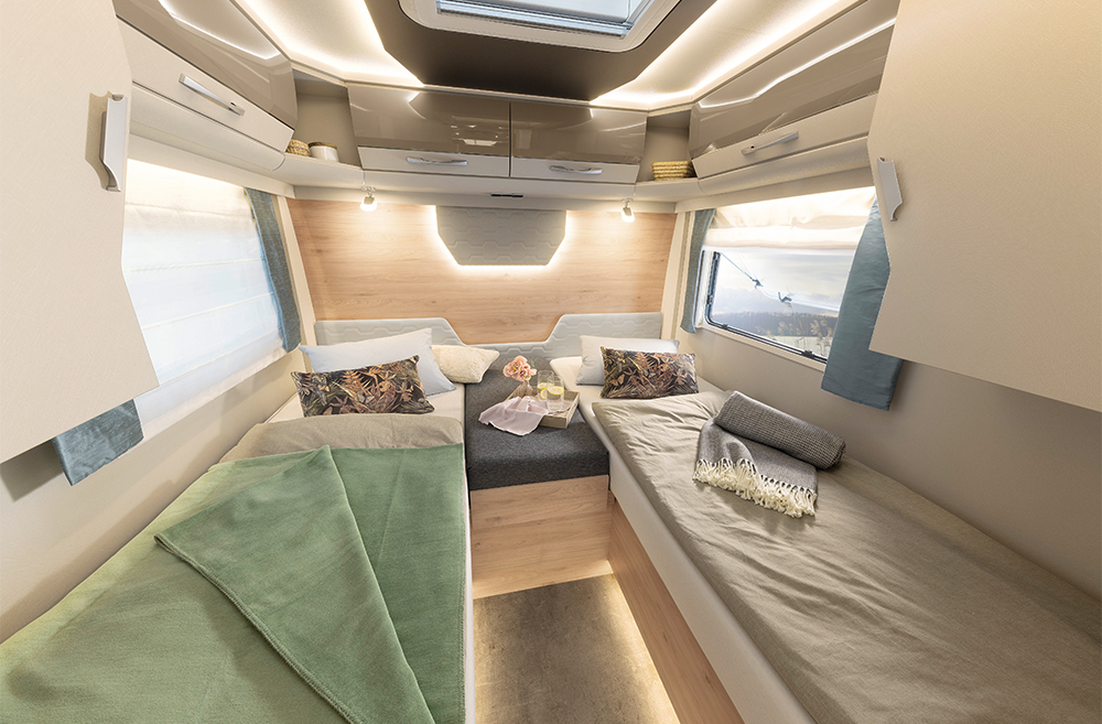 Trend T og Trend I fås begge i 5 forskellige grundrids med enten enkeltsenge, højdejusterbar fritstående dobbeltseng (queens bed) eller seng på tværs. I T-modellerne kan der suppleres med en 2 personers elektrisk sænkeseng over siddegruppen eller ombygning af siddegruppen til en seng (ekstraudstyr). I I-modellerne er den rummelige og komfortable sænkeseng over førerhuset selvfølgelig standardudstyr.