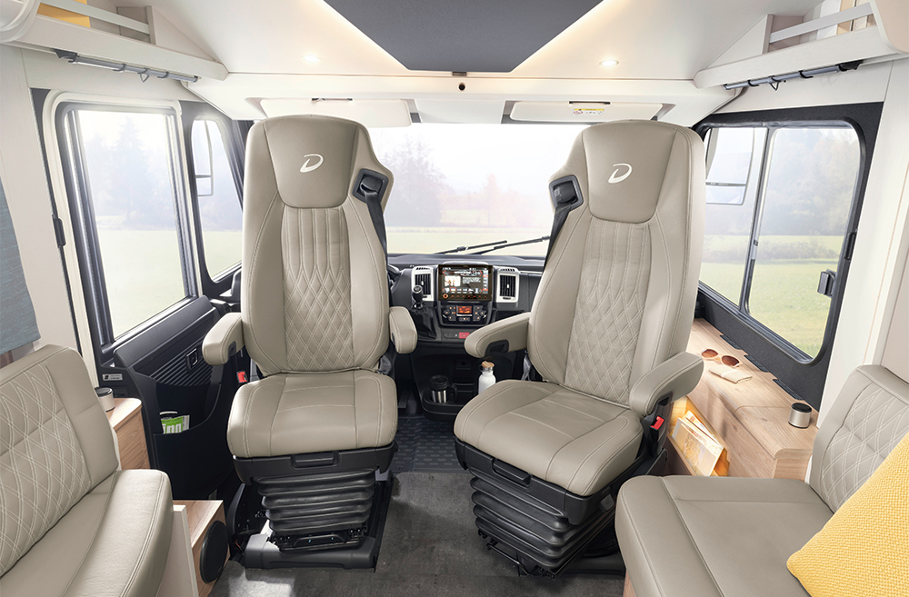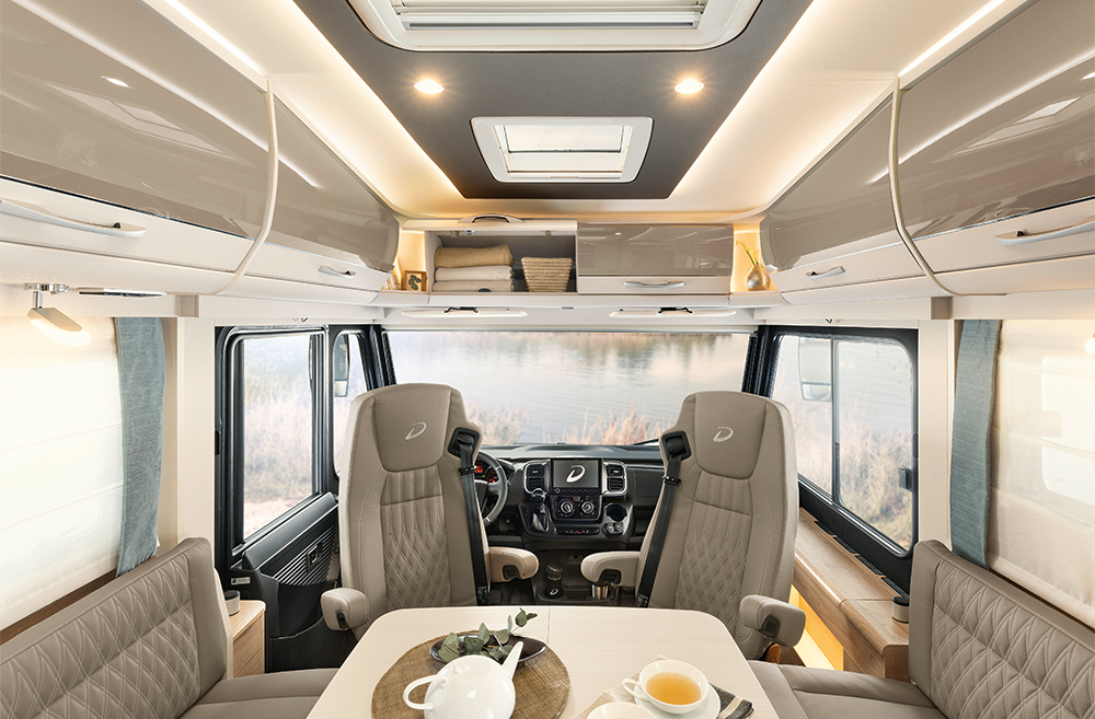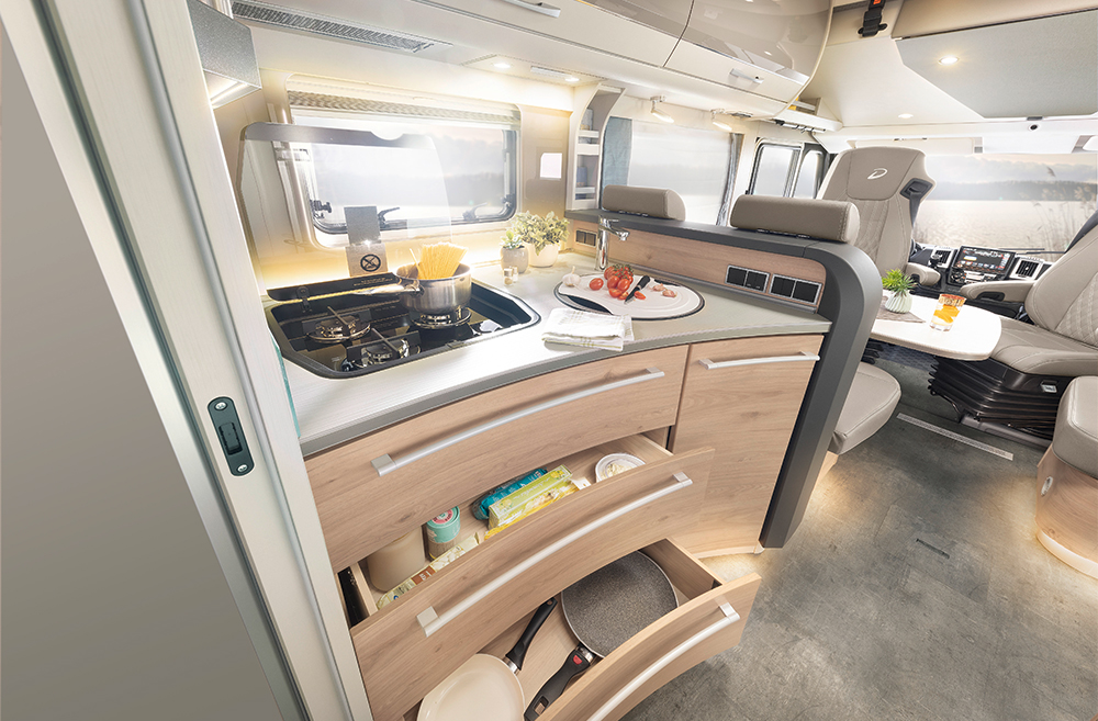 Den familievenlige autocamper modelserie fås i den delintegrerede Trend T med aerodynamisk udbygning over førerhuset og oplukkeligt vindue og den fuldintegrerede Trend I med stor panoramafrontrude.