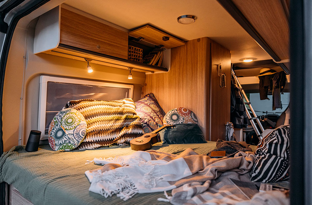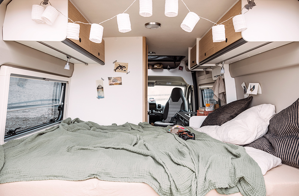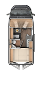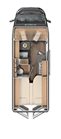 CLIFF RT Adventure Editions fås i 3 grundrids med enten seng på langs, på tværs eller dobbelt køjeseng på tværs. Alle med god plads bagerst i bilen. Dertil kommer sovetaget, der er til 2 personer, sengestørrelse: 206 × 143 cm.