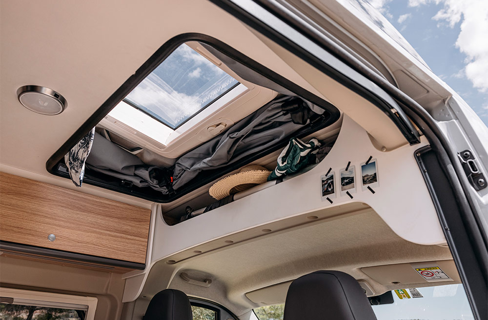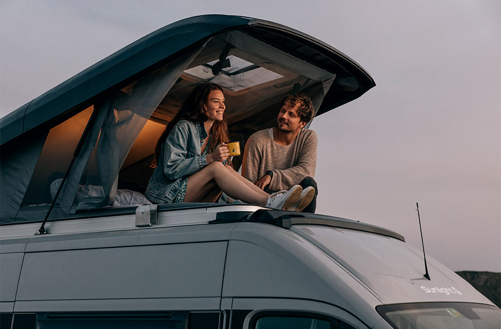 Sunlights Camper Van i RT-modellen har et førsteklasses hævetag! Med branchens største sovetag forbliver CLIFF RT slank og kan samtidig tilbyde mere plads til personer og udstyr, mere komfort og mere frihed. Panoramaet kan nydes fra vinduet i sovetaget eller udsigtsområdet kan åbnes med lynlås. CLIFF RT har meget standardudstyr, og både Basic pakke og Style pakke er inkluderet.