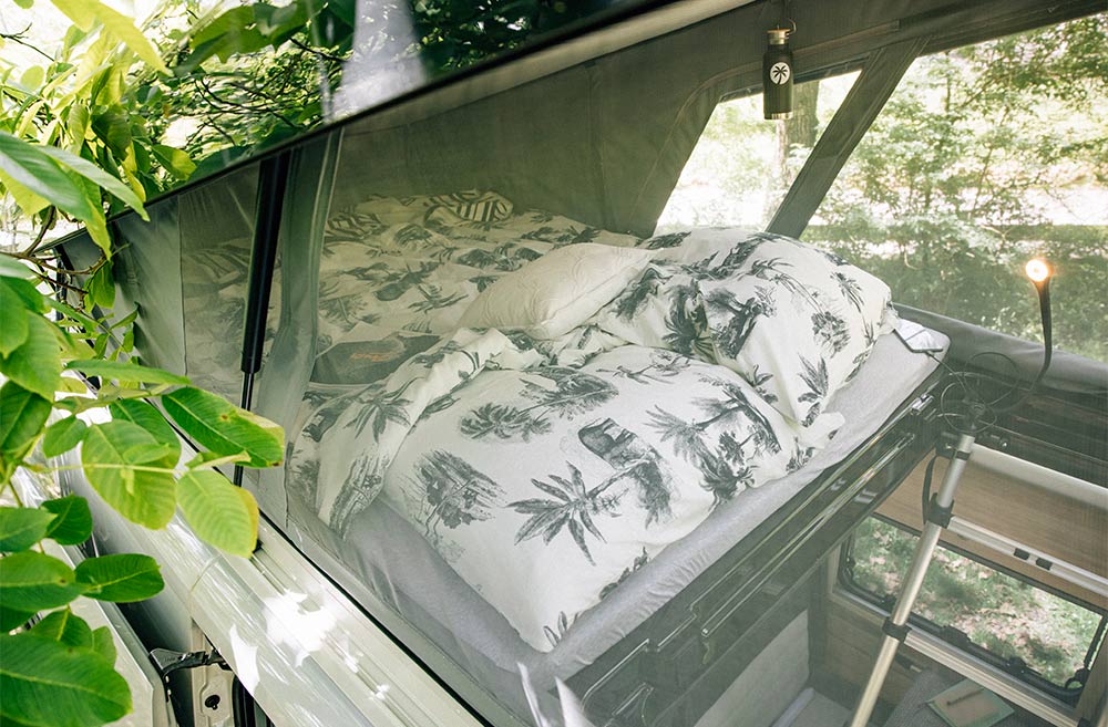 - Sovetag med panoramaudsigt: Udsigtsområdet kan åbnes med lynlås og alle åbninger er beskyttet af myggenet