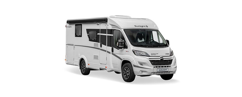 Sunlights Vans Adventure Edition er med ekstra meget standardudstyr og Basic pakke. Vanen er smal (214 cm) og meget manøvredygtig, og styres dermed let gennem smalle bjergpas og snævre gader. Trods de smalle udvendige mål er der god plads i bodelen og desuden et adskilt opbevaringsrum i garagen. Med andre ord en autocamper for dig, der har meget udstyr med og alligevel vil rejse ubesværet og fleksibelt.