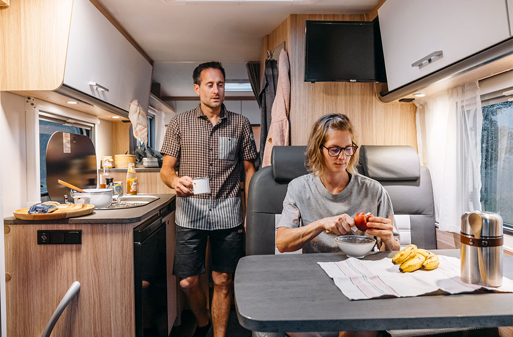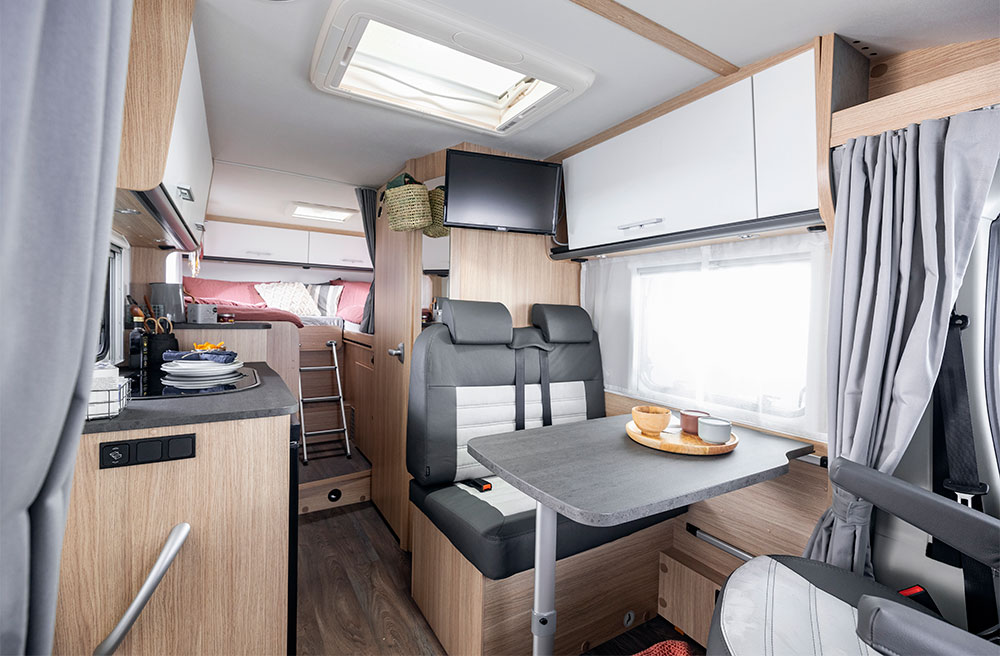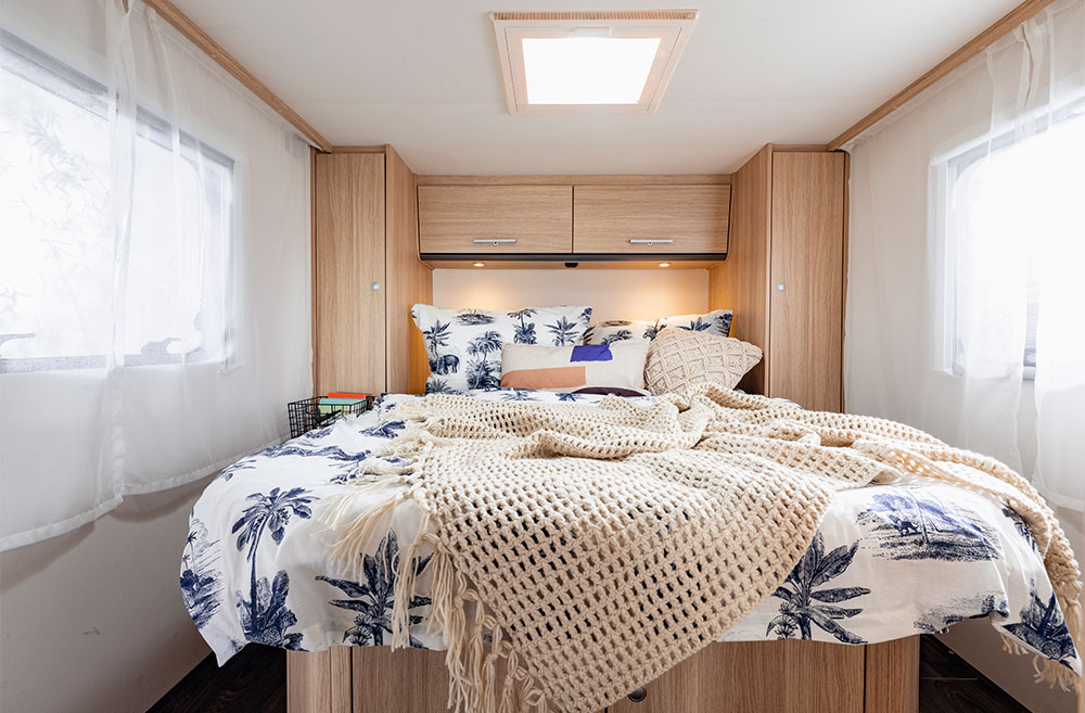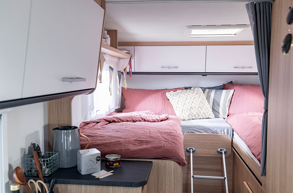 Vans Adventure Edition fås i 3 grundrids med enten seng på tværs, enkeltsenge eller fritstående dobbeltseng (queens bed).