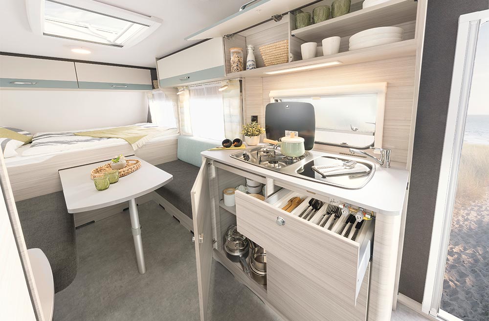 - Kompakt og adræt: En af de smalleste campingvogne i sin klasse med bare 2,12 m bredde