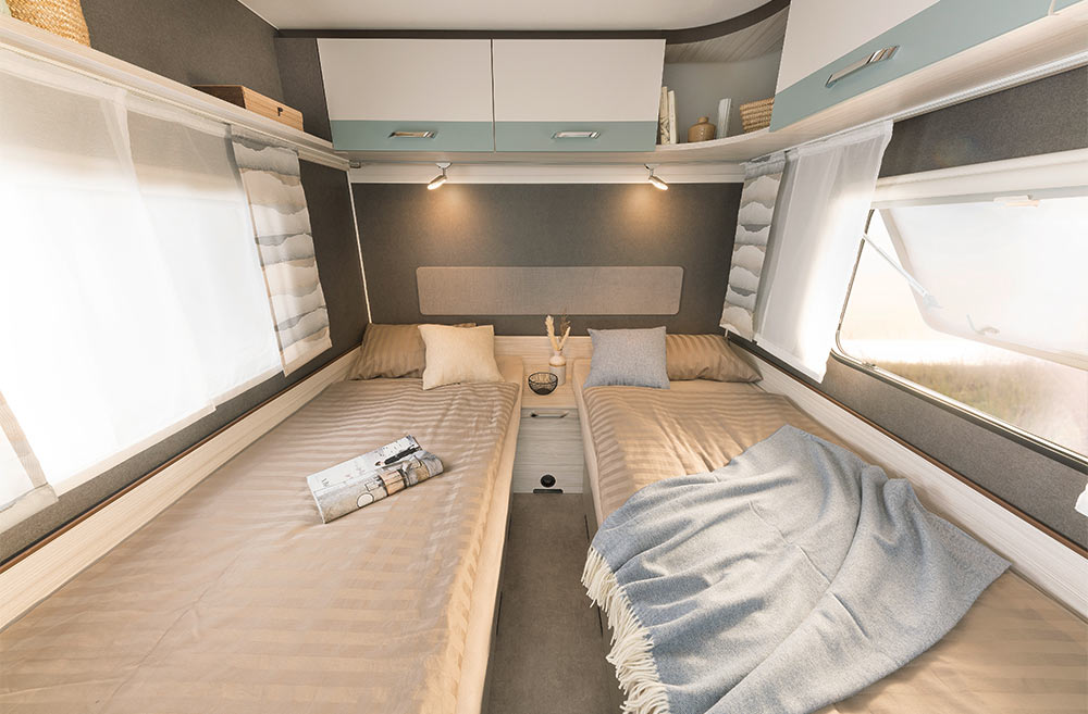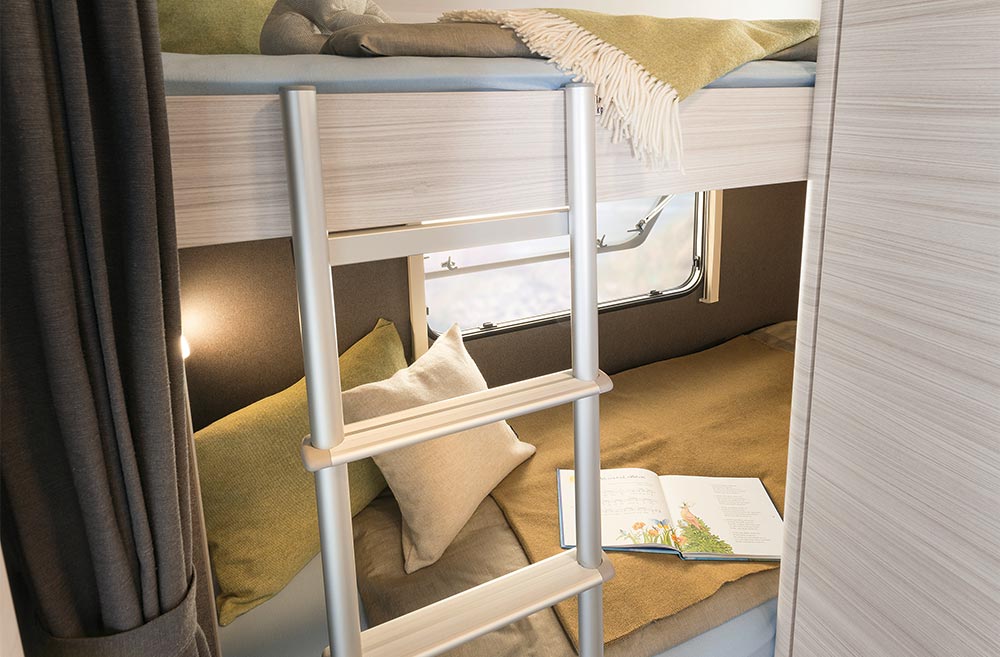 c’joy fås i 5 forskellige grundrids med enten enkeltsenge, dobbeltseng og sænkeseng, og naturligvis også som køjevogn med op til 7 sovepladser.