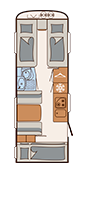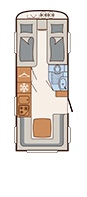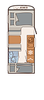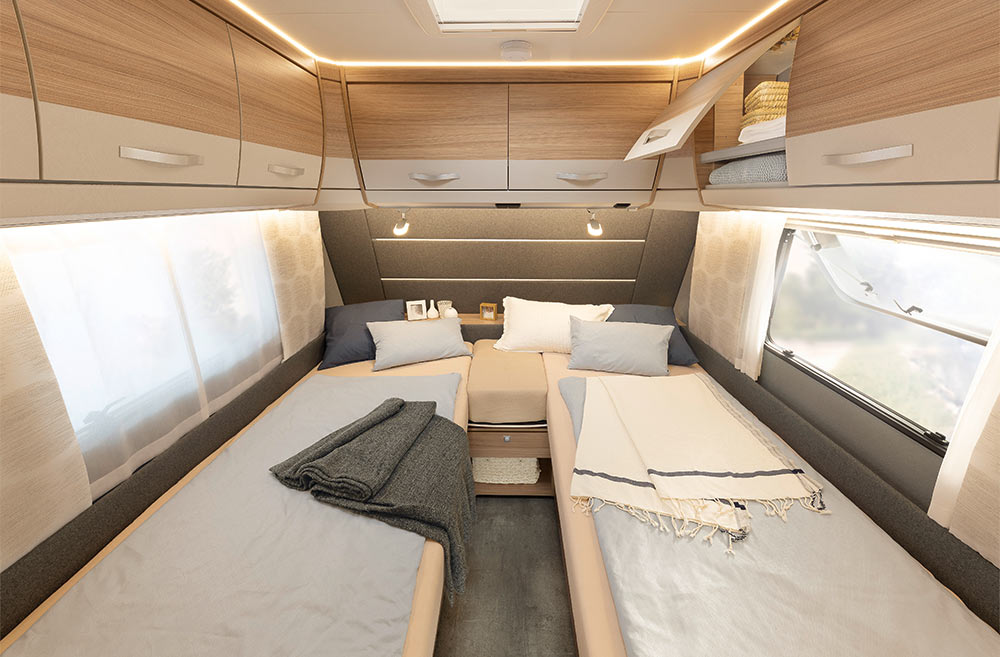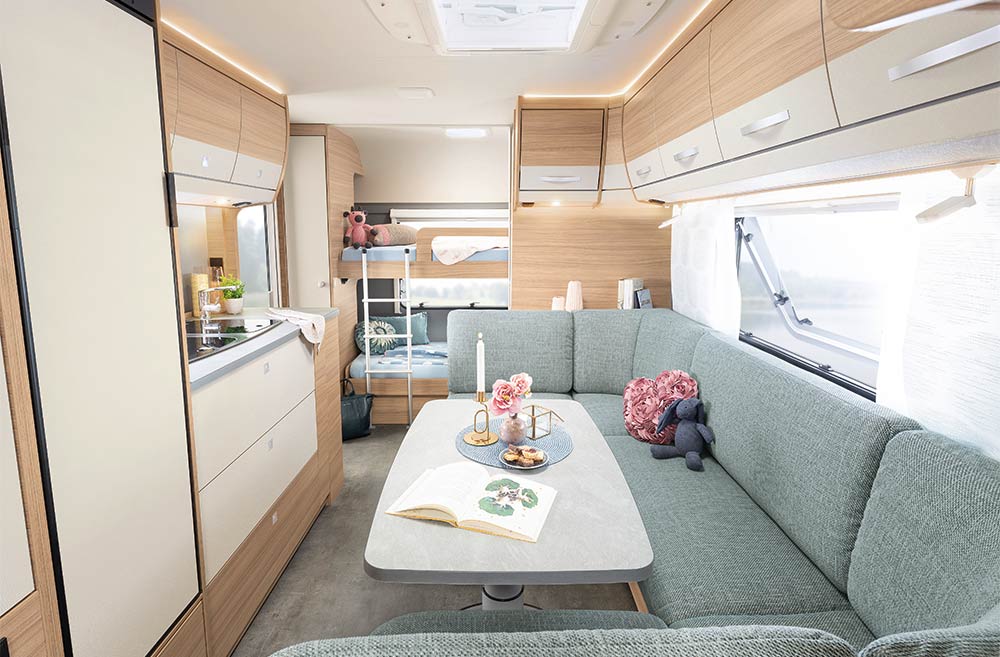 Camper fås i 8 forskellige grundrids med enten enkeltsenge eller køjevogn.