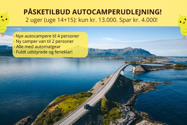 Vi har lige nu 5 ledige autocampere i påsken uge 14+15 med skift enten torsdag (26.03.-09.04.26) eller fredag (27.03.-10.04.25). Se de ledige autocampere nedenfor.