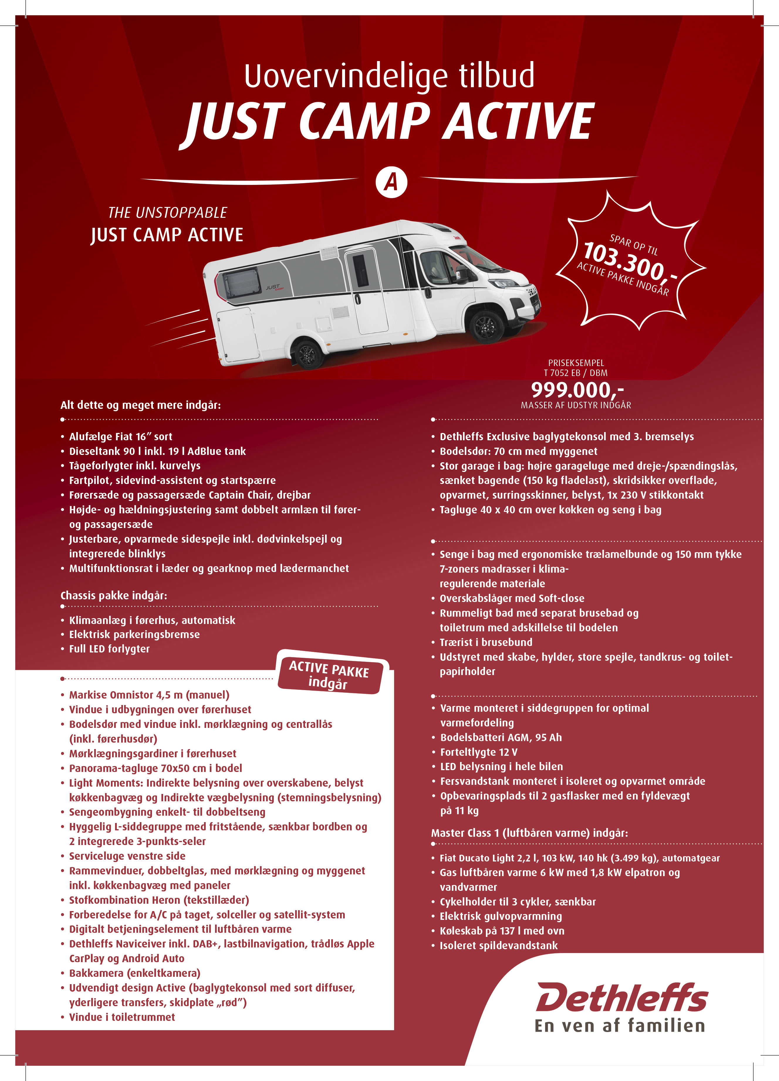 Vanvittigt Dethleffs tilbud! Spar 103.000,- på den nye lækre 2026 kampagnemodel Dethleffs Just Camp Active. OBS: Vi har 5 stk. tilbage til levering inden sommerferien.
