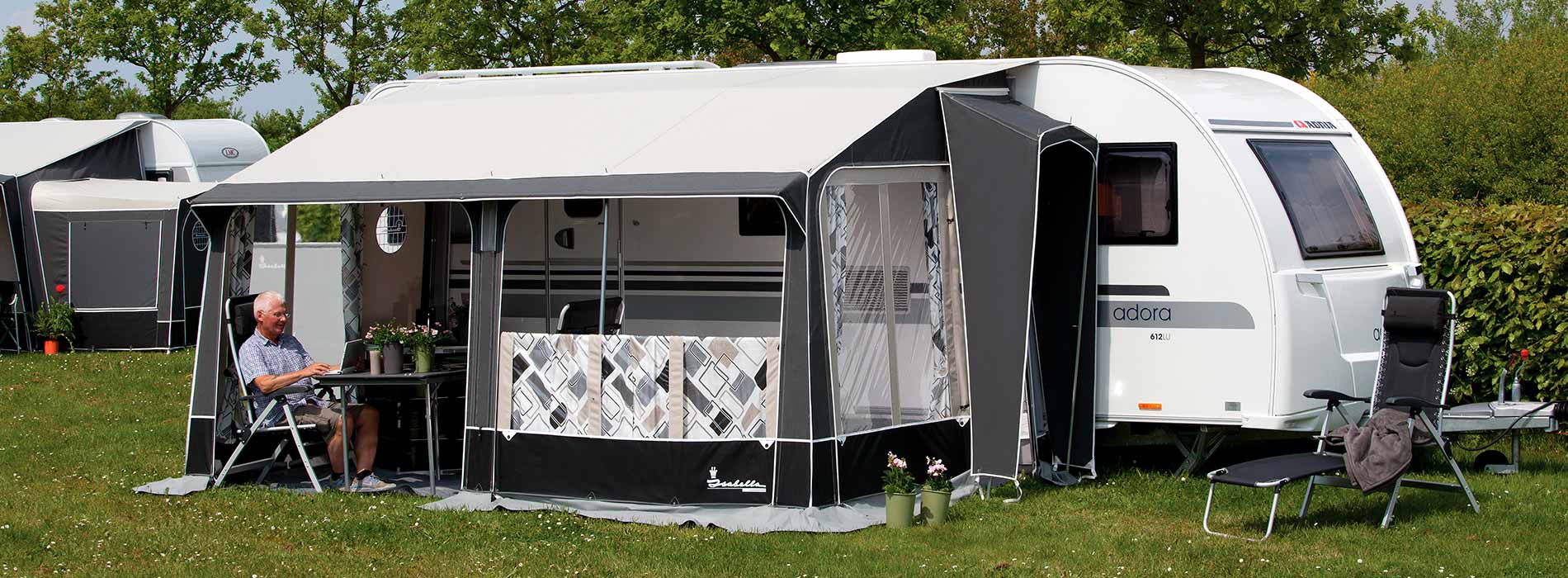 - Et billede af hele bagenden af campingvognen, hvor nummerpladen kan ses